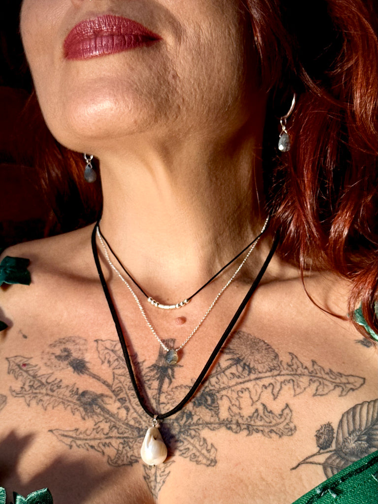 Baroquecoco - Gem Set Baroque Pearl Necklace in Sterling Silver
