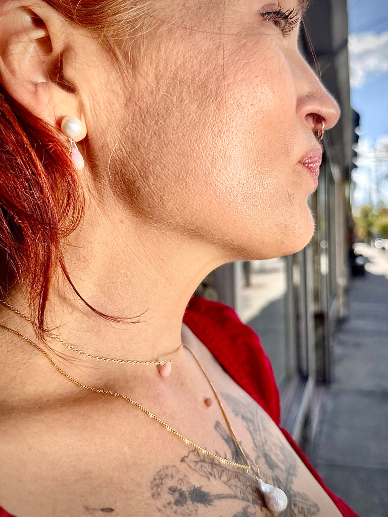 14K gold is a good mix of durability, affordability, and allergen-friendliness. Yet, if you find that 14K is still reacting with your skin, we recommend switching to higher karats of solid gold with less alloy materials, such as 18K or 21K solid gold. Even though we do not carry these karats in our ready-to-wear collections, you can always reach out for custom styles with your preferred solid gold.