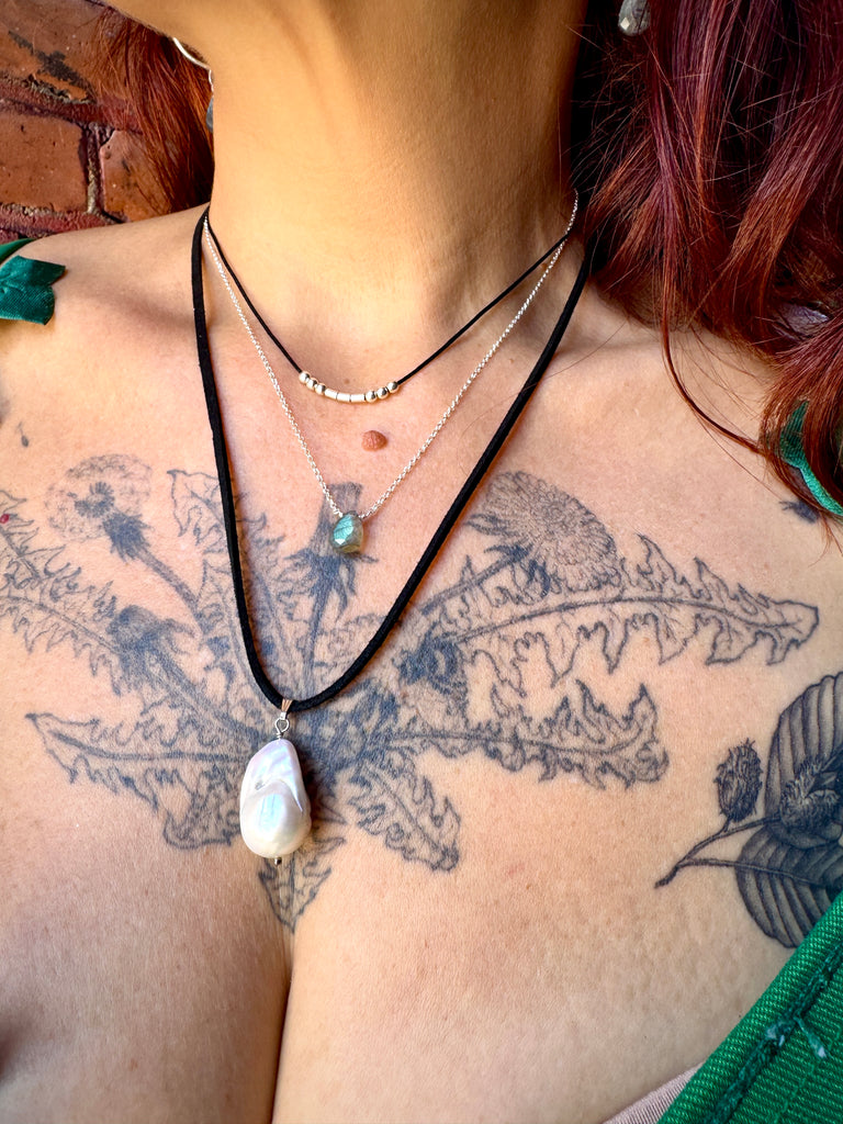 Baroquecoco - Gem Set Baroque Pearl Necklace in Sterling Silver